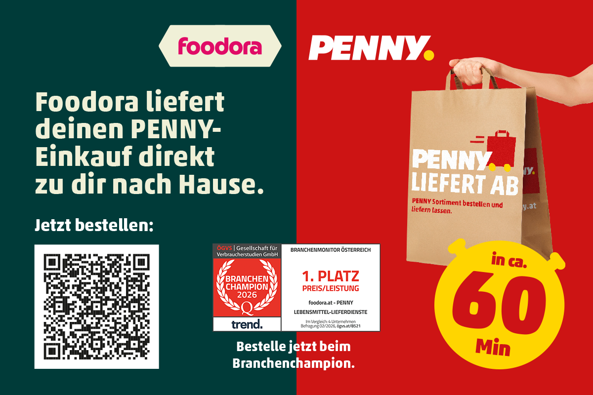 Du wohnst im Großraum Wien, Graz, Salzburg oder Klagenfurt? Lass dir dank der Partnerschaft mit foodora, Produkte von PENNY in mittlerweile 29 Städten ganz bequem nach Hause liefern.