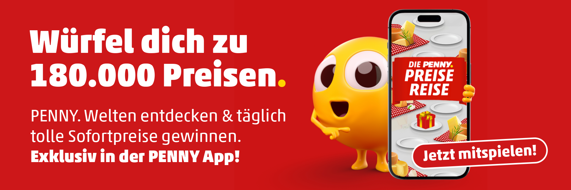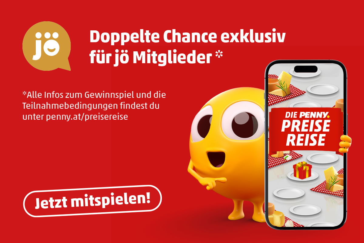 Bei der Verknüpfung der PENNY APP und des jö Kontos profitiert man von allen digitalen jö Vorteilen und man kann zwei Mal täglich an der PENNY. Preise Reise teilnehmen, sofern beim ersten Mal verloren wurde. So erhöht sich deine Gewinnchance pro Tag.