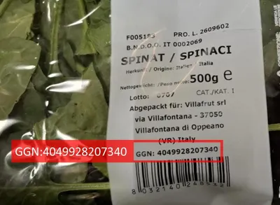 Die GGN ist die Identifikationsnummer für landwirtschaftliche Erzeugerbetriebe und findet sich am Etikett des Produkts über dem Strichcode. Spinatprodukte mit anderen GGN stammen von anderen Erzeugern und sind nicht betroffen.
