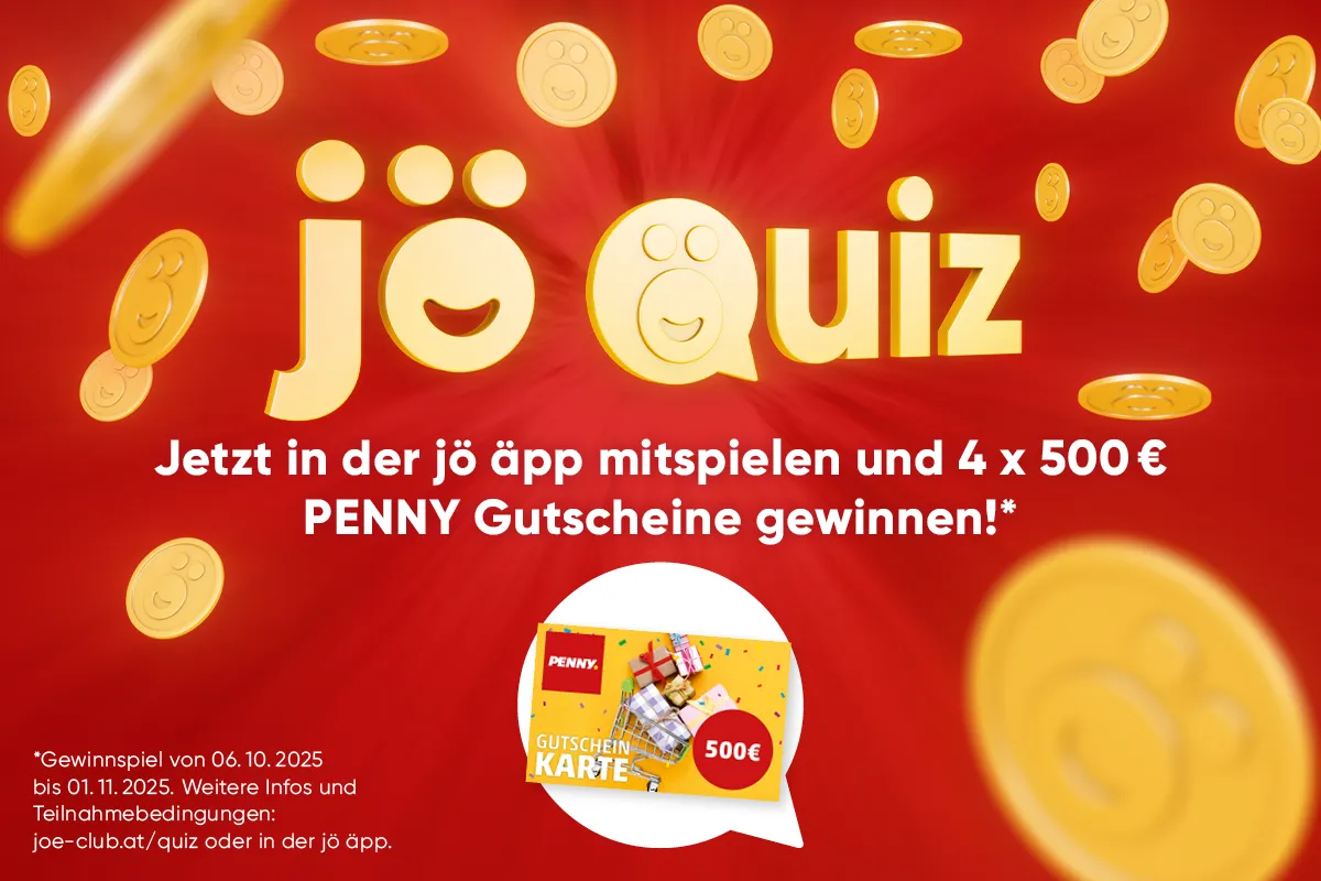 Der jö Bonus Club wurde 2019 gegründet und die Blätter der Bäume verfärben sich im Herbst, weil der Gehalt an Chlorophyll abnimmt – das hast du alles schon gewusst? Dann auf zum großen jö Quiz und stell‘ dort dein Wissen rund um jö, die jö Partner und die goldene Jahreszeit unter Beweis. Es winken grandiöse Sachpreise, auch von deinem PENNY!