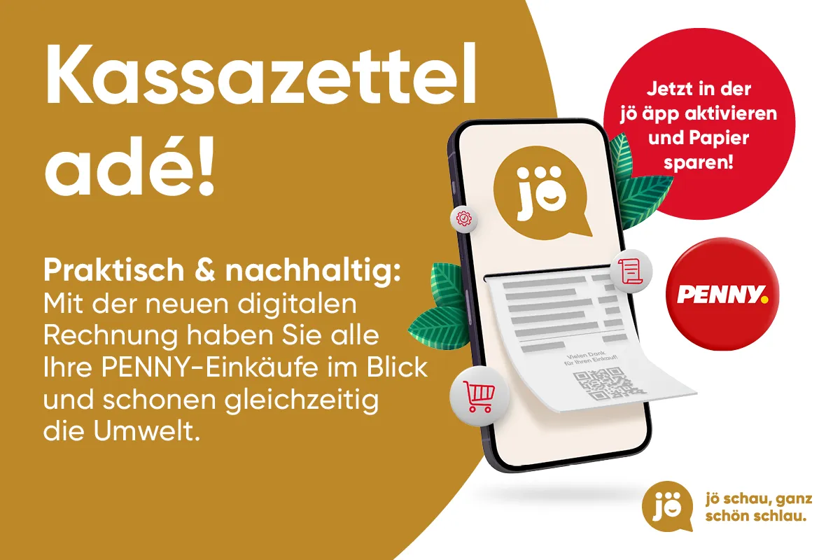 Deine jö Karte gilt bei allen teilnehmenden jö Partnern. Dein verfügbares Ö Guthaben siehst du jederzeit am Kassabon, online unter jö-club.at oder auf deinem Smartphone in der PENNY APP oder jö äpp.