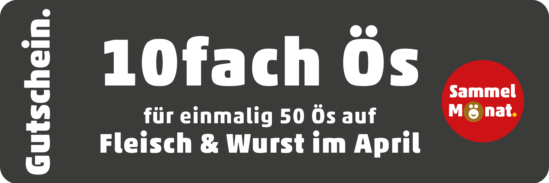 10fach Ös auf Fleisch-, Geflügel- & Wurst-Produkte. Einfach von 2. bis 30. Mai 2026 einmalig 50 Ös einlösen und schon sammelst du nach der Aktivierung dauerhaft und automatisch durch das Vorzeigen deiner