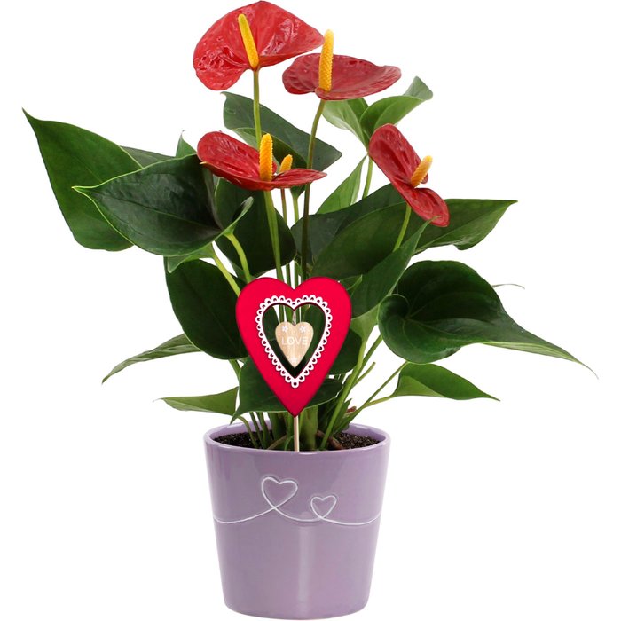 mit Herzstecker, div. Farben, im 12 cm Topf, ca. 40 cm hoch