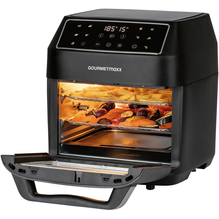mit 9 Funktionen und 10 voreingestellten Programmen, inkl. reichhaltigem Zubehör, ca. 12 Liter, 4-in-1: Fritteuse, Ofen, Grill & Dörrautomat in einem