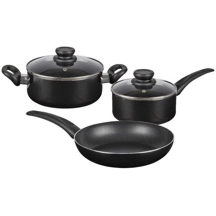 bestehend aus Bratpfanne Ø ca. 24 cm, Kochtopf Ø ca. 20 cm und Stielkasserolle Ø ca. 16 cm