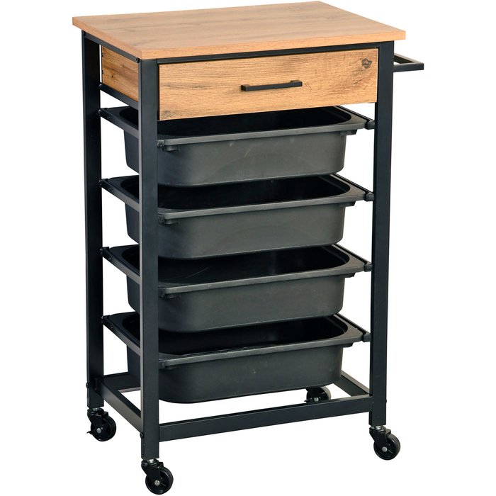 mit FSC®-zertifizierter Spanplatte in Eichendekor, Rahmen aus Metall, mit 4 Ablagekörben und 1 Schublade, ca. 47 x 37 x 85 cm