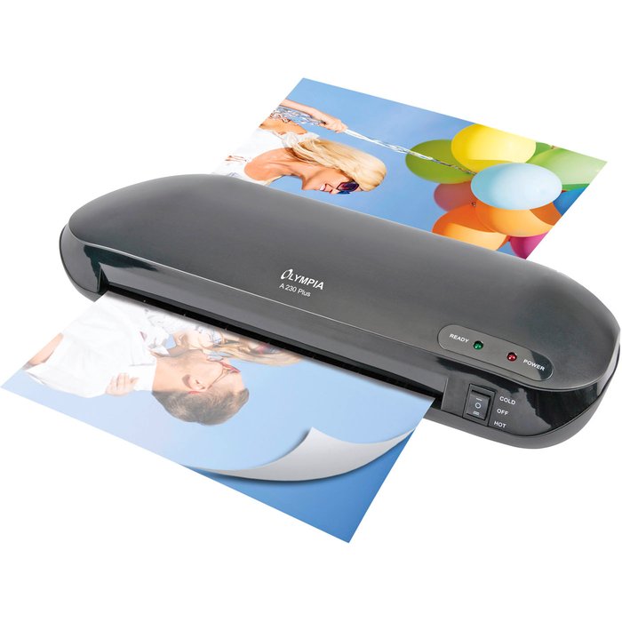 zum Heiß- und Kalt-Laminieren bis DIN A4; Laminierbreite: ca. 23 cm, Folienstärke: 75 bis 125 Micron automatische Abschaltung bei Überhitzung
