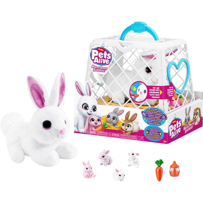 batteriebetrieben, Mama-Hase macht verschiedene Geräusche, mit Überraschungsbabyhasen inkl. Hasenkäfig und Zubehör
