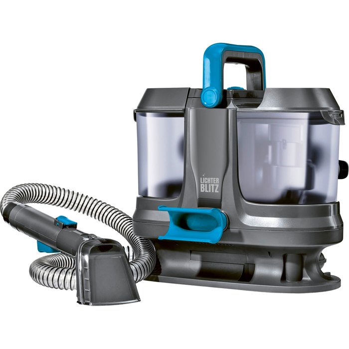 Doppeltank-System trennt Frisch- und Schmutzwasser, Frischwassertank: ca. 1,1 Liter, Schmutzwassertank: ca. 0,5 Liter ca. 1,2 m, flexibler Schlauch für schwer zugängliche Stellen inkl. Kombidüse und 2-in-1-Fugendüse, vielseitig einsetzbar für z.B.: Sofas, Autositze, Teppiche, Matratzen etc., 3-in-1-Funktion: Sprühen, Bürsten, Saugen