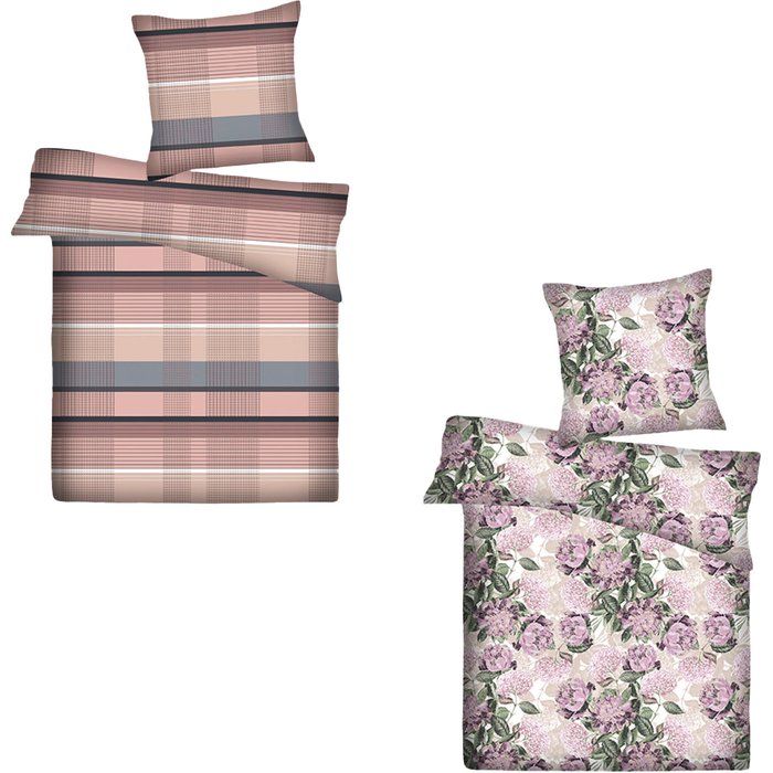 aus 100 % Baumwolle, Kissenbezug: ca. 70 x 90 cm, Bettdeckenbezug: ca. 140 x 200 cm, mit Reißverschluss für einfaches Beziehen, div. Motive