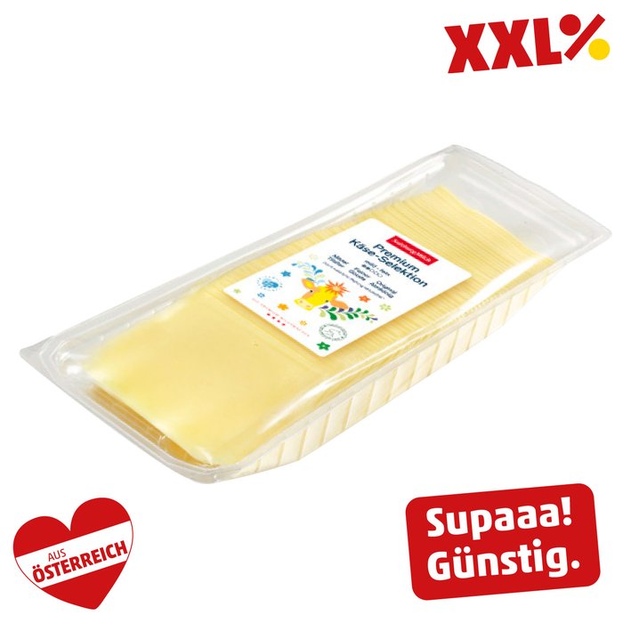 in Scheiben mild-fein, Sorten: Tilsiter, Gouda und Almkönig