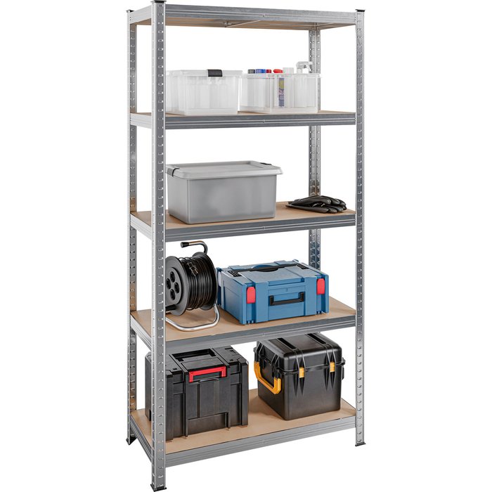 aus verzinktem Metall mit 5 Böden, max. Belastbarkeit je Boden ca. 175 kg, schnelle Montage dank Stecksystem, Größe vertikal: ca. 90 x 40 x 180 cm, Größe horizontal: ca. 180 x 40 x 90 cm, horizontal od. vertikal aufbaubar