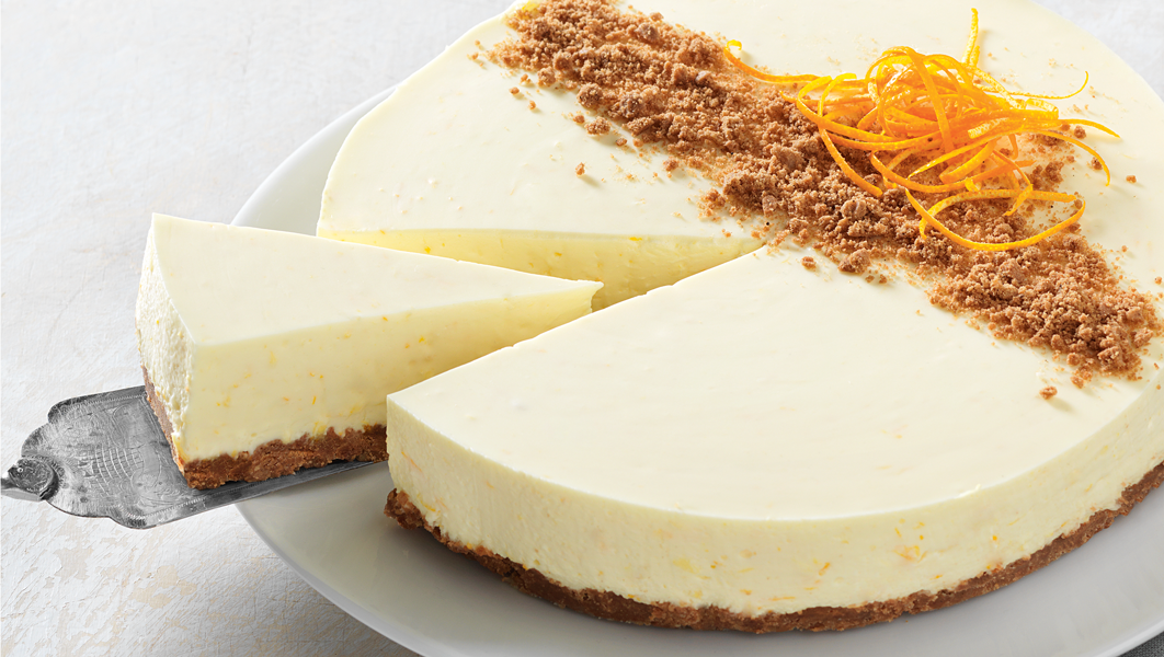 Kuchen mindestens 6 Stunden kalt stellen. Anschließend vorsichtig die Springform lösen, den Cheesecake nach Belieben mit Spekulatiusbröseln und Orangenzesten garnieren und portionieren.