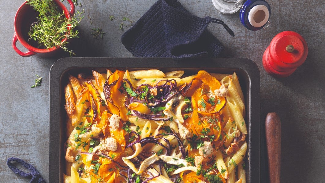 Penne-Auflauf mit Hokkaido-Kürbis und Brie
