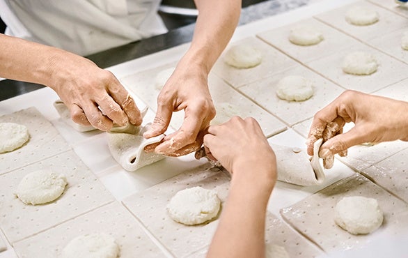 Die tiefgekühlten Teiglinge werden drei Mal wöchentlich in die PENNY. Filialen geliefert und von den PENNY. Backstuben-Mitarbeiter:innen vor Ort mehrmals täglich frisch gebacken.