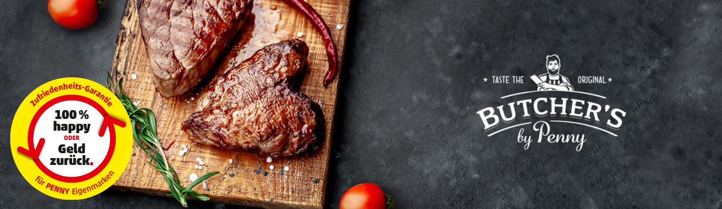 Mit Butcher's bei PENNY erwartet dich ein richtig gutes Steak. Das Rinderhüftsteak überzeugt mit Zartheit, einzigartigem Geschmack und einer hochwertigen Choice-Qualität.