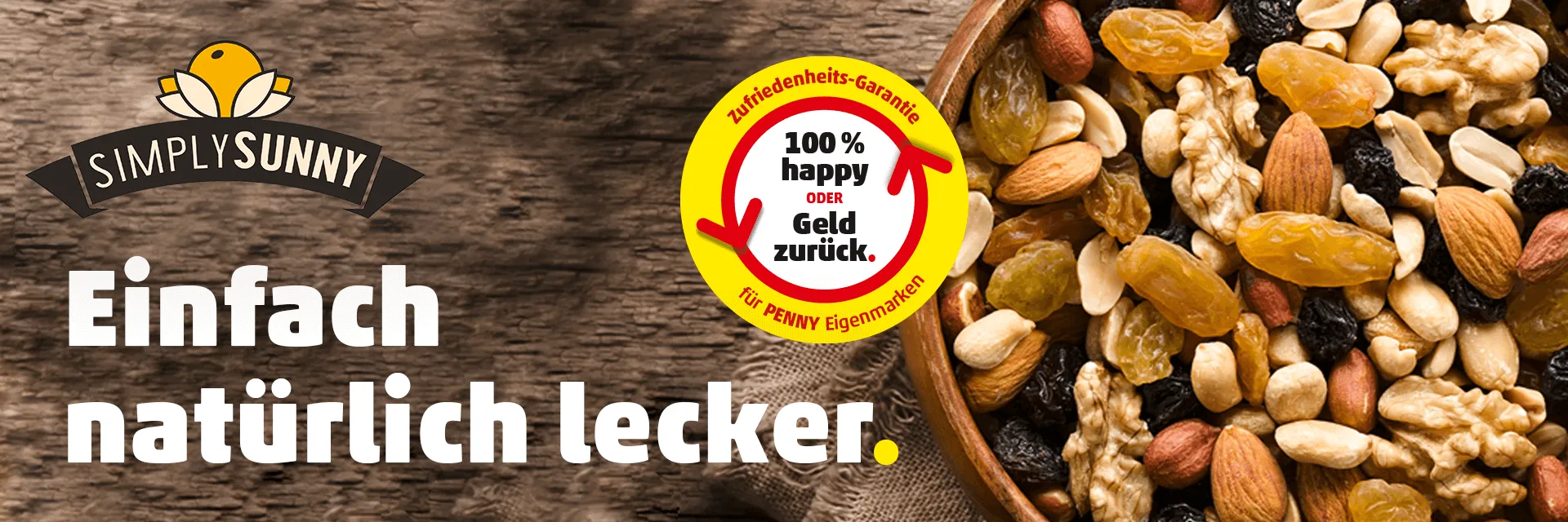 Kerniger oder fruchtiger Genuss für bewusstes Snacken, auch zum Kochen und Garnieren - das ist die PENNY Eigenmarke Simply Sunny. Lecker gesalzen oder völlig naturbelassen: Simply Sunny unterstützt dich dabei, dich ausgewogen zu ernähren.