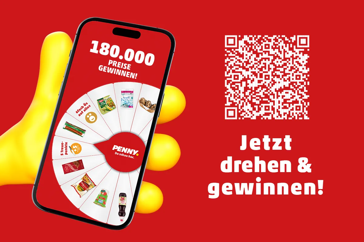 Mit dem PENNY GÜCKSRAD Gewinnspiel kannst du direkt in der PENNY APP täglich einen von über 180.000 Gewinnen erspielen.