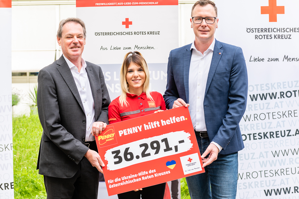 Ein großes Dankeschön geht auch an unsere Mitarbeiter:innen der REWE Group in Österreich sowie an unsere PENNY Kund:innen, die ihren Beitrag geleistet haben. So konnten über 57.790 Euro (21.536 von unseren Mitarbeiter:innen und 36.291 Euro von unseren Kund:innen) an das Österreichische Rote Kreuz gespendet werden. Wir sagen DANKE für die großzügige Unterstützung.