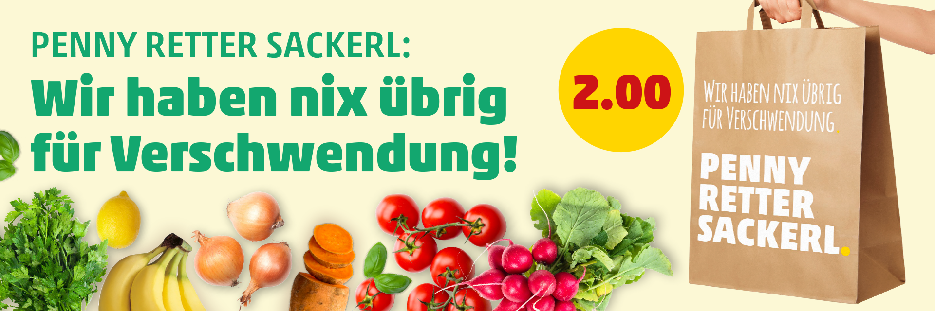 Ganz nach dem Motto „Nachhaltigkeit to go“ werden in allen PENNY Filialen ab sofort sogenannte PENNY Retter Sackerl mit frischem Obst und Gemüse vom PENNY Marktstand angeboten. Mit dieser Initiative möchten wir bei PENNY möglichst viele noch haltbare und frische Lebensmittel retten.