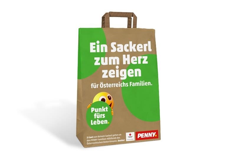 Als erster Diskonter Österreichs hat sich PENNY vom Plastiksackerl verabschiedet und hilft so, Plastikmüll zu verringern. Darüber hinaus unterstützt PENNY mit der kleinen Papiertragetasche ein Herzensanliegen und spendet pro gekaufter Tasche 2 Cent an den Familien-Hilfsfonds des Roten Kreuzes.